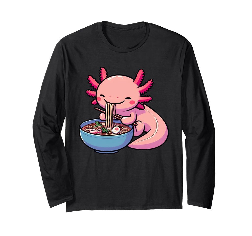 Аксолотль Ест Рамен Милый Аниме Ест Лапшу Японская Футболка с Длинным Рукавом