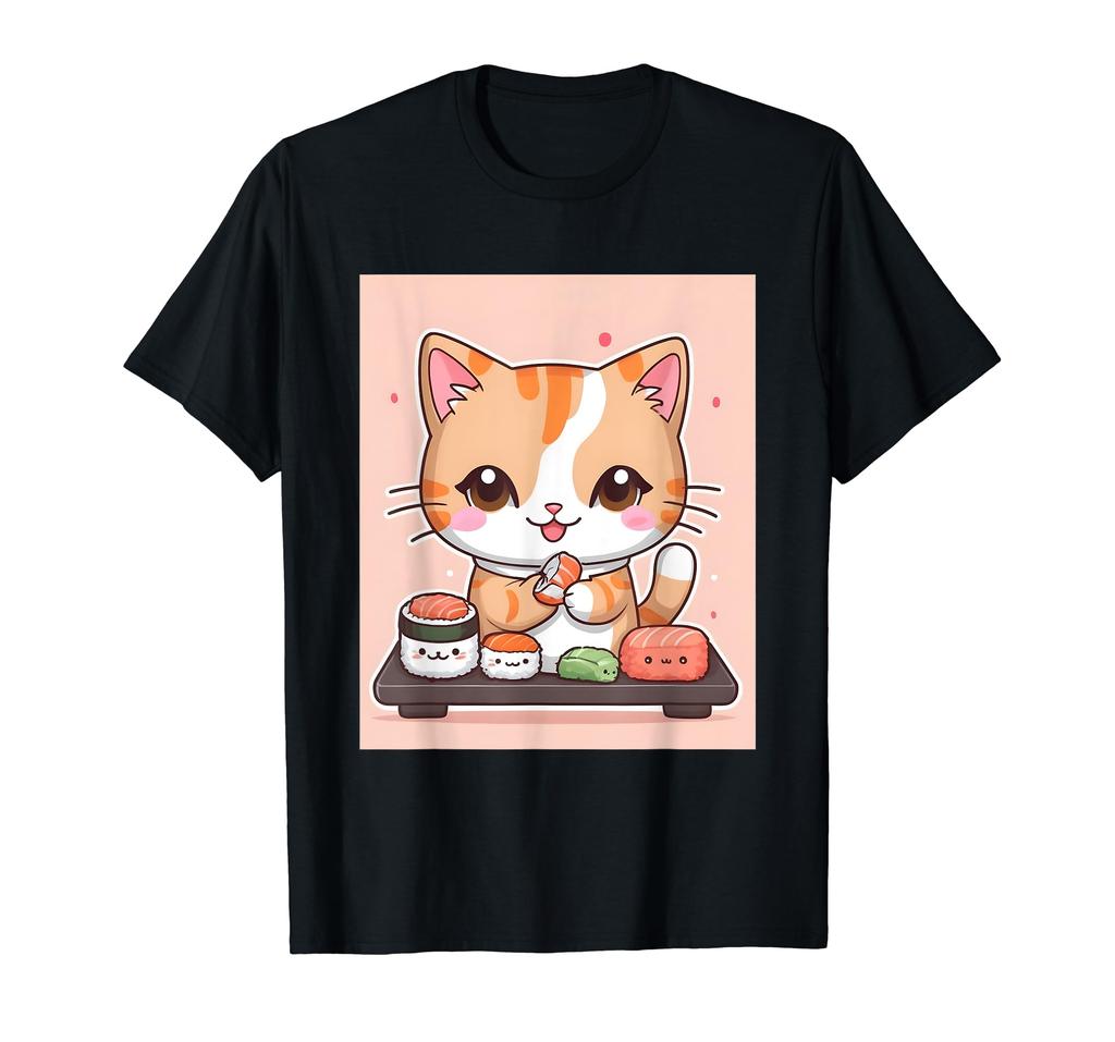 Вещи печатные Kawaii, кот, суши, милый, просо, японский, футболка