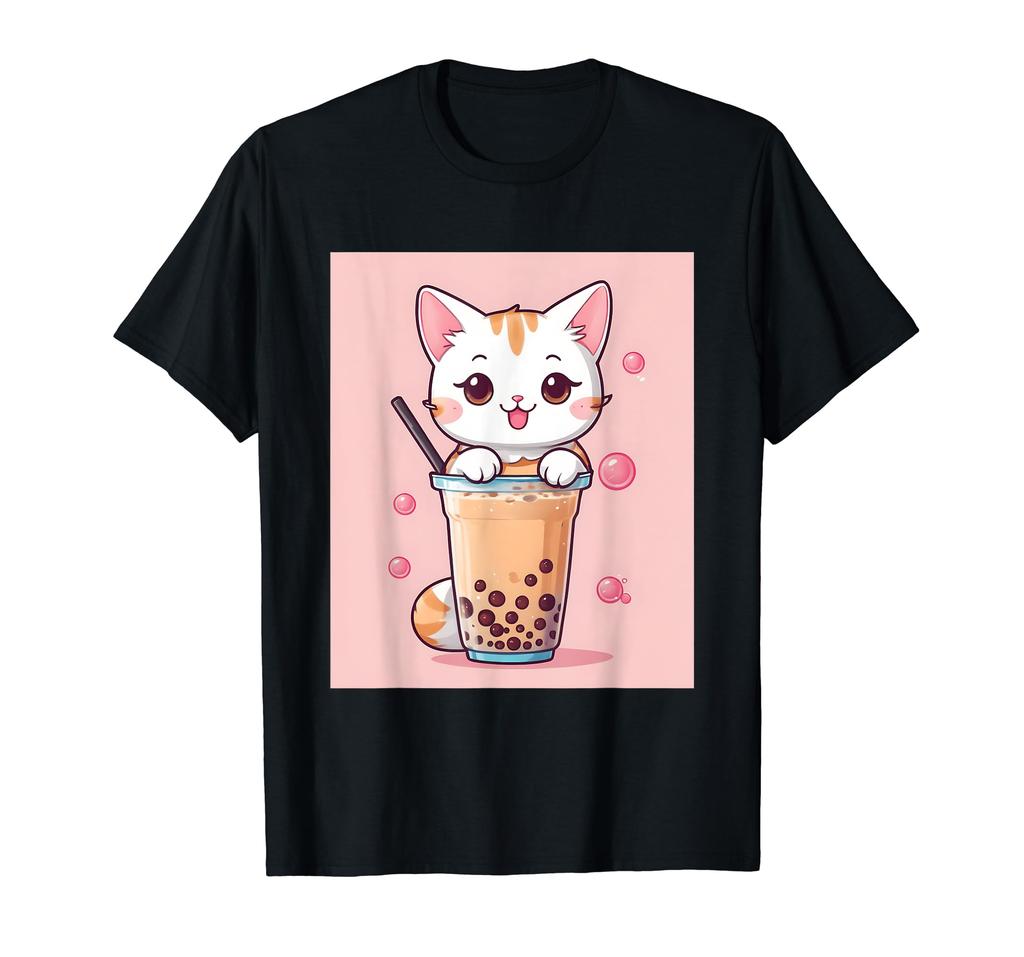 Пузырчатые вещи с принтом Каваи, кошка, боба, чай, милый, японский, футболка