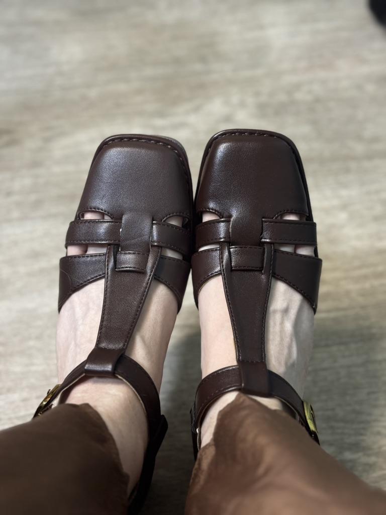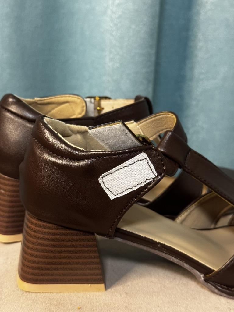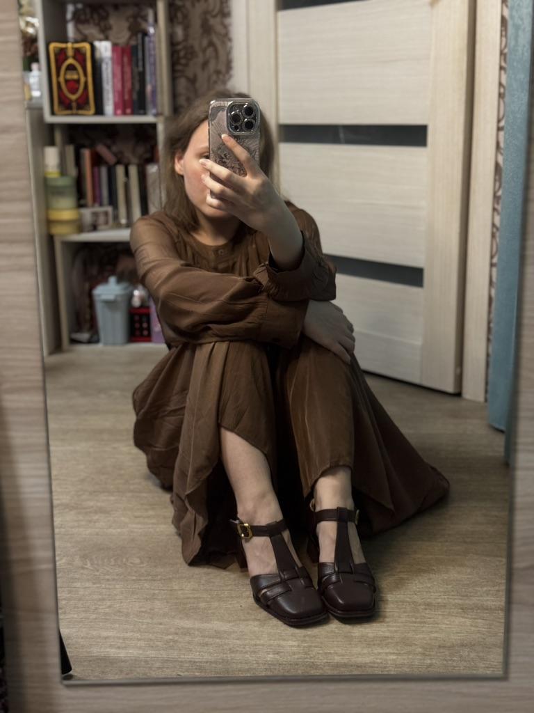 Туфли на липучке 🤌🏻 Не ожидала того, что они окажутся на липучке, но это не особо заметно и вдобавок достаточно удобно. Сокращает время на застегивание стопроцентно) Кожзам достаточно добротный, цвет — коричневый, как на картинке. Выглядят винтажненько, так что станут хорошим дополнением именно к винтажным образам. Швы хорошие, каблучок невысокий и устойчивый. Ноге в них комфортно) На свой 37 размер (23,5 см стопа) размер подошел отлично! Комфортно прям)