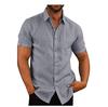 Мужская рубашка с двойным карманом, из хлопка и льна, с коротким рукавом, для мужчин, повседневная, для отпуска, пляжная рубашка, уличная одежда, однотонная, приталенного кроя