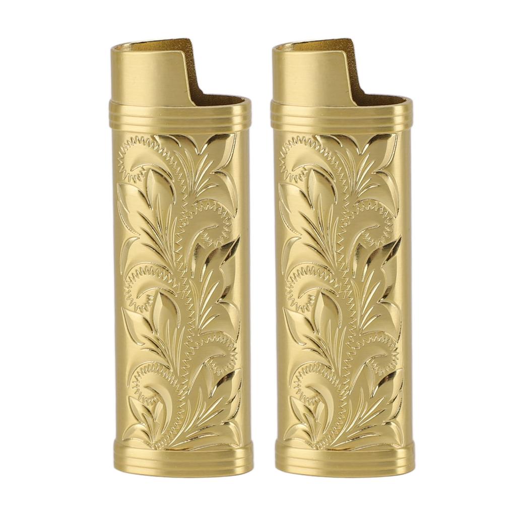 2Pcs Lighter Case Zinc Alloy Lighter Storage Container Floral Pattern for Outdoor Camping Hiking