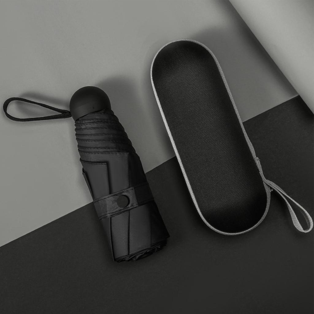 Зонт-капсула Мини Карманный УФ-устойчивый 2 использования 5 секций 8 кромок Аксессуары для отдыха на открытом воздухе Черный