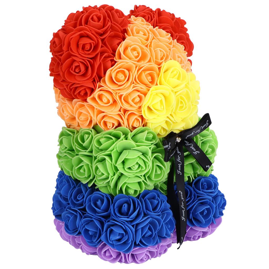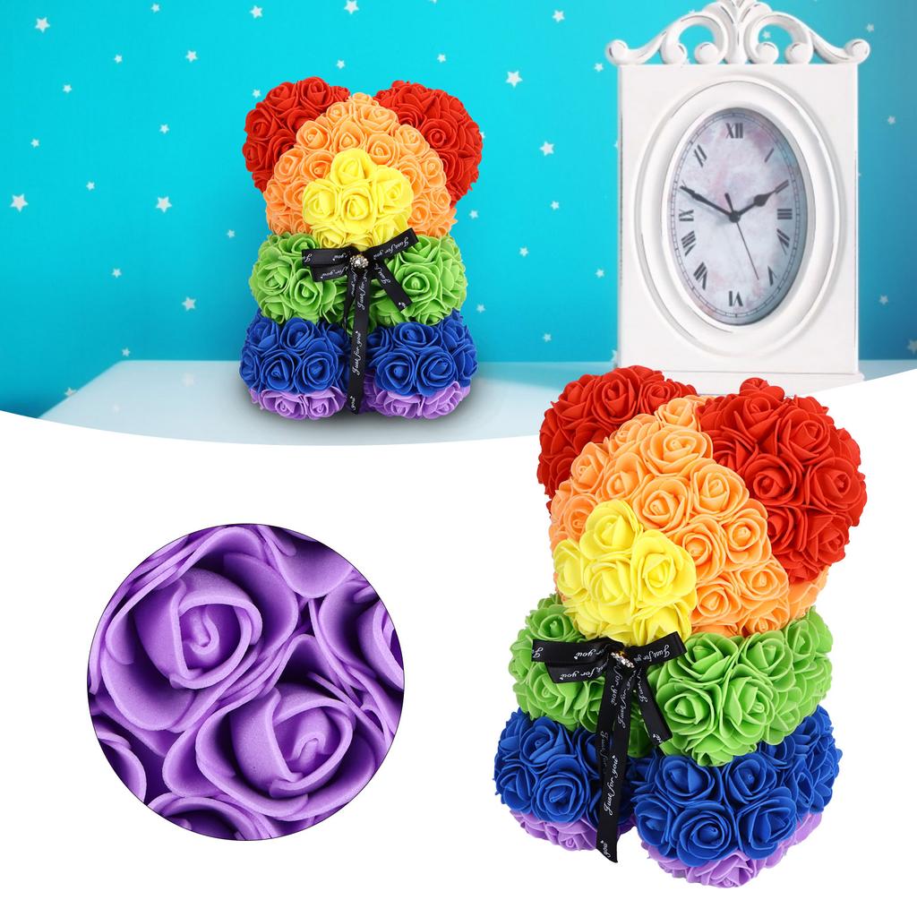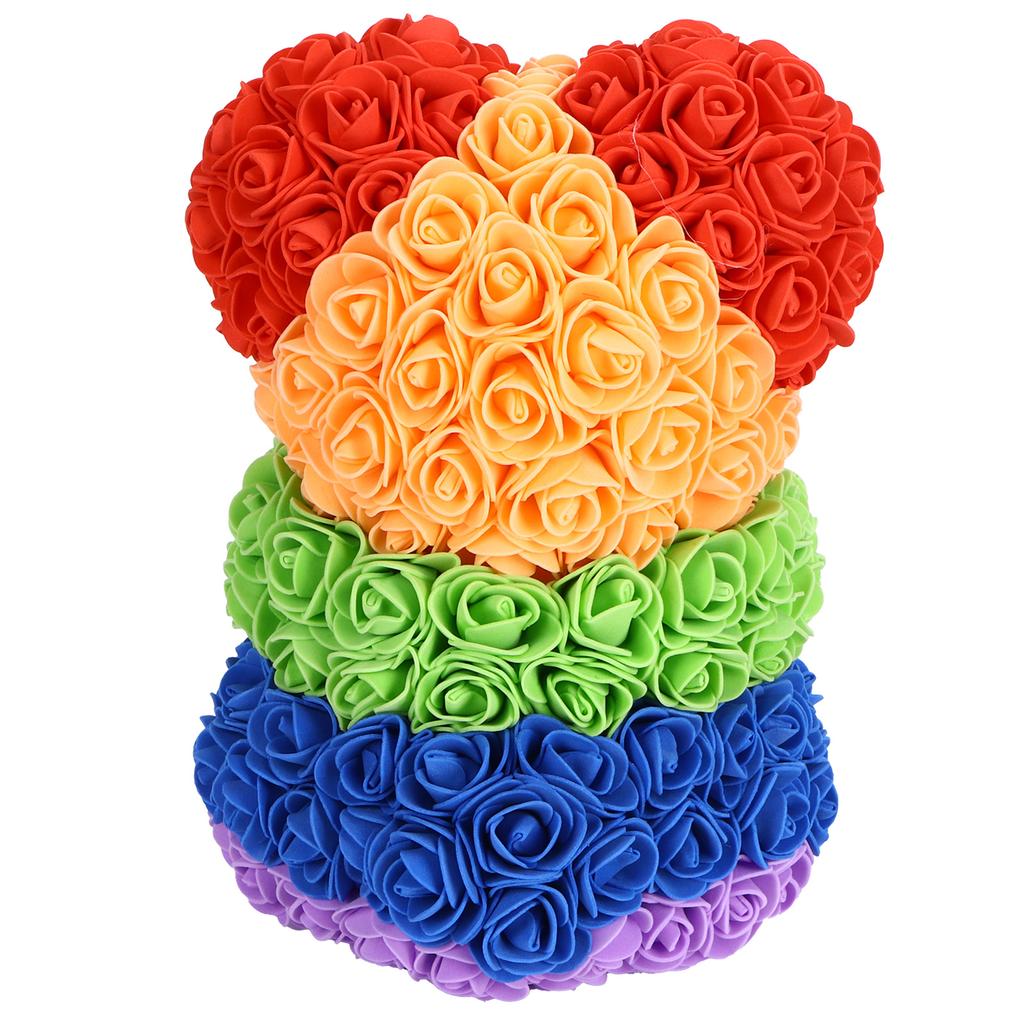Украшение «Мишка с цветами» Разноцветная искусственная роза Подарок на День святого Валентина, годовщину