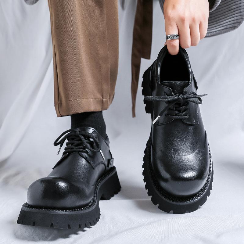 Туфли дерби мужские черные на толстой подошве загнутые вверх кожаные туфли для поездок на работу пара туфли с большим носком женские повседневные туфли, увеличивающие рост 66689-Z