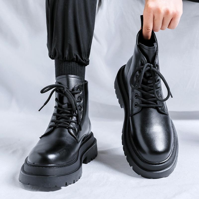 Осенние ботинки Мартин в британском стиле мужские ботинки в стиле локомотивного инструментария на толстой подошве с увеличением высоты средней высоты кожаные ботинки ботильоны 56734-R