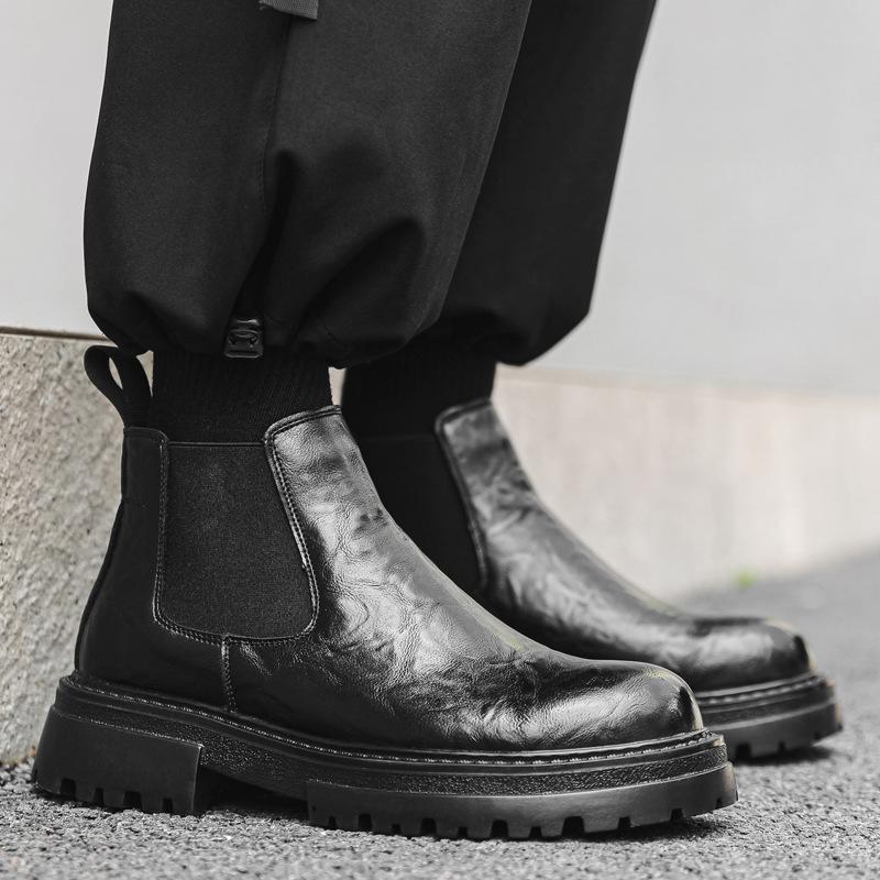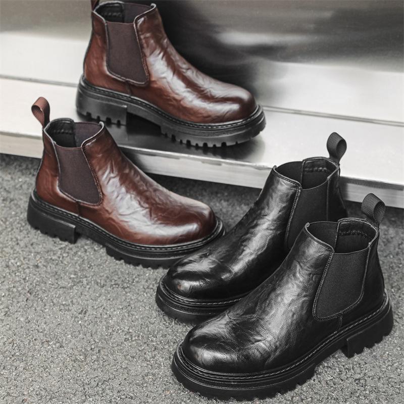 2025 Ботинки Мартин Мужские Средней Высоты на Толстой Подошве Ретро Ручная Захват Универсальные Короткие Ботинки Челси Модные Мужские Ботинки 2114-J