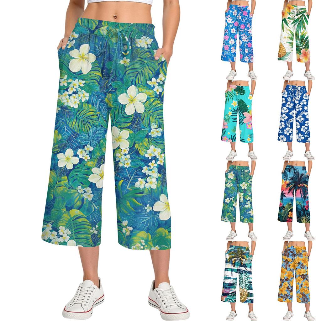 Женские летние повседневные спортивные брюки с высокой талией и принтом, укороченные брюки свободного покроя — купить товар онлайн с бесплатной доставкой по всему миру!