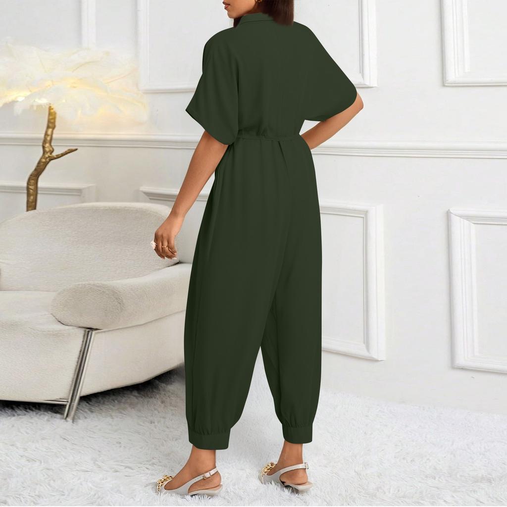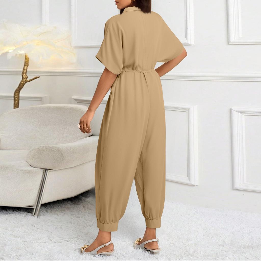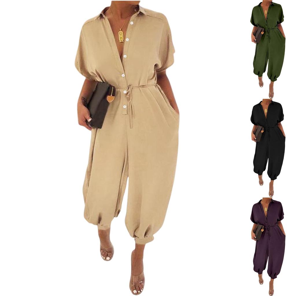 Женский летний комбинезон с коротким рукавом, повседневный, комфортный, свободный комбинезон