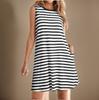 Женское свободное удобное повседневное и модное платье без рукавов в полоску и клетку