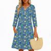 Платья для женщин Весенние сарафаны Женское повседневное платье с рукавом 3/4 V-образный вырез Бохо Платье с цветочным принтом