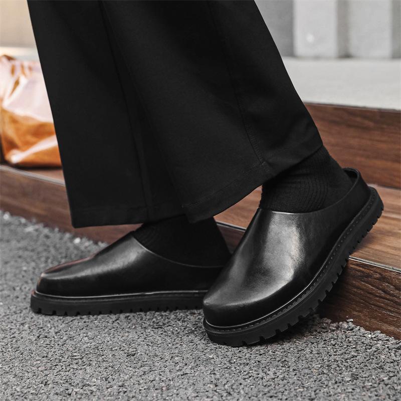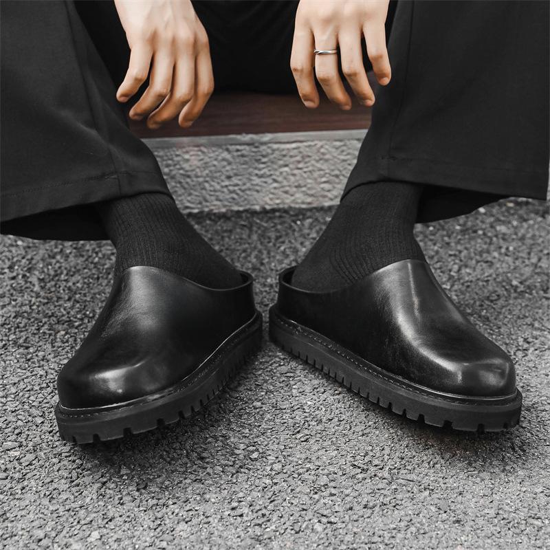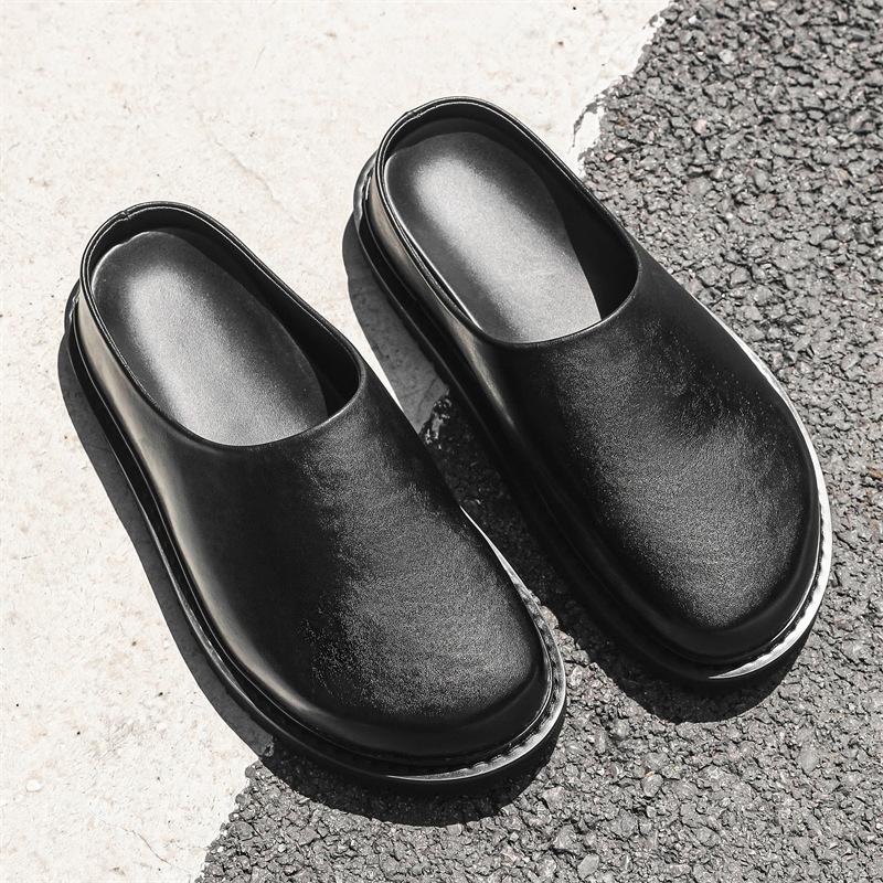 2025 г., мужские тапочки-мешки на толстой подошве, нескользящие, увеличивающие высоту, поварские туфли, повседневные сандалии-полуботинки 18887-J