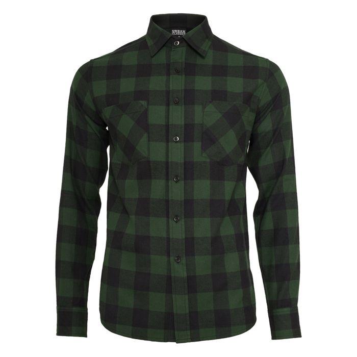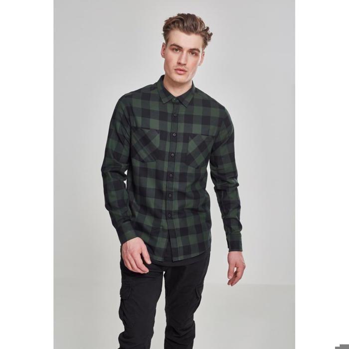 Chemise - Urban Classic - Flanelle - Noir/Vert Forêt - Manches Longues - Regular