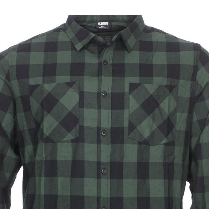 Chemise à carreaux - Urban Classics - Vert et Noir - Manches longues - Col classique - 100% Coton