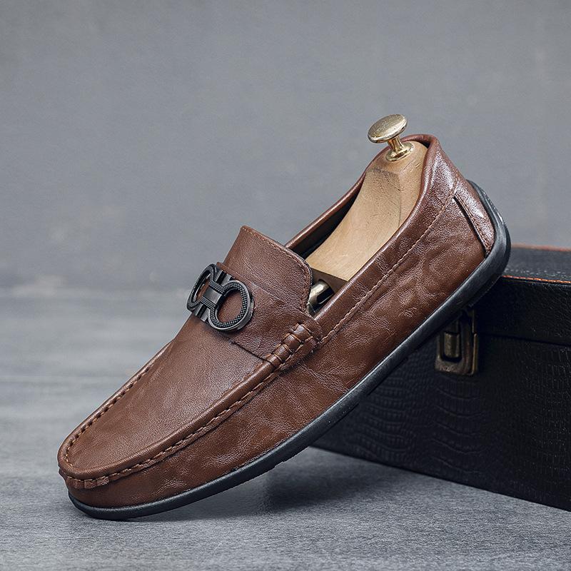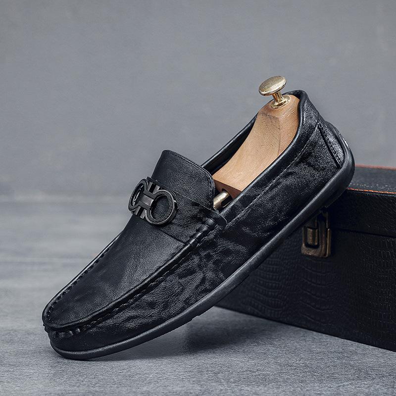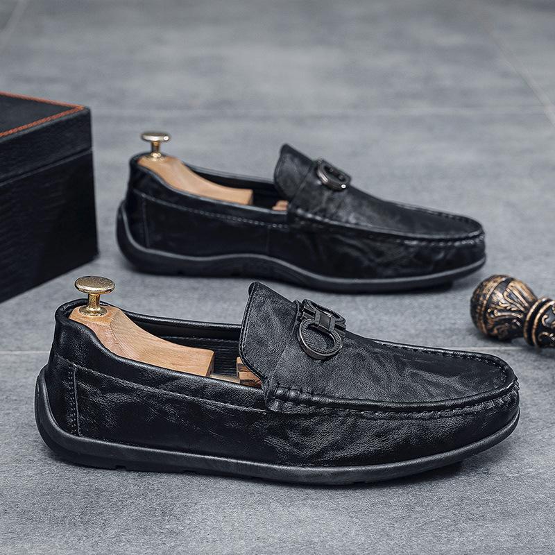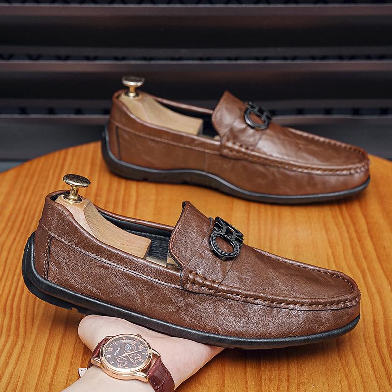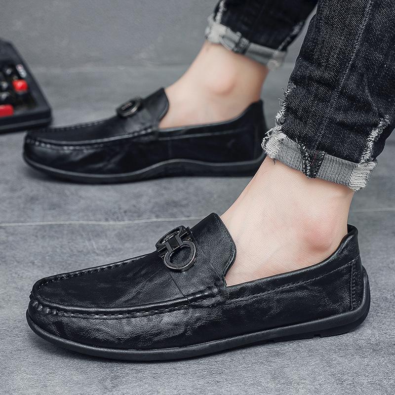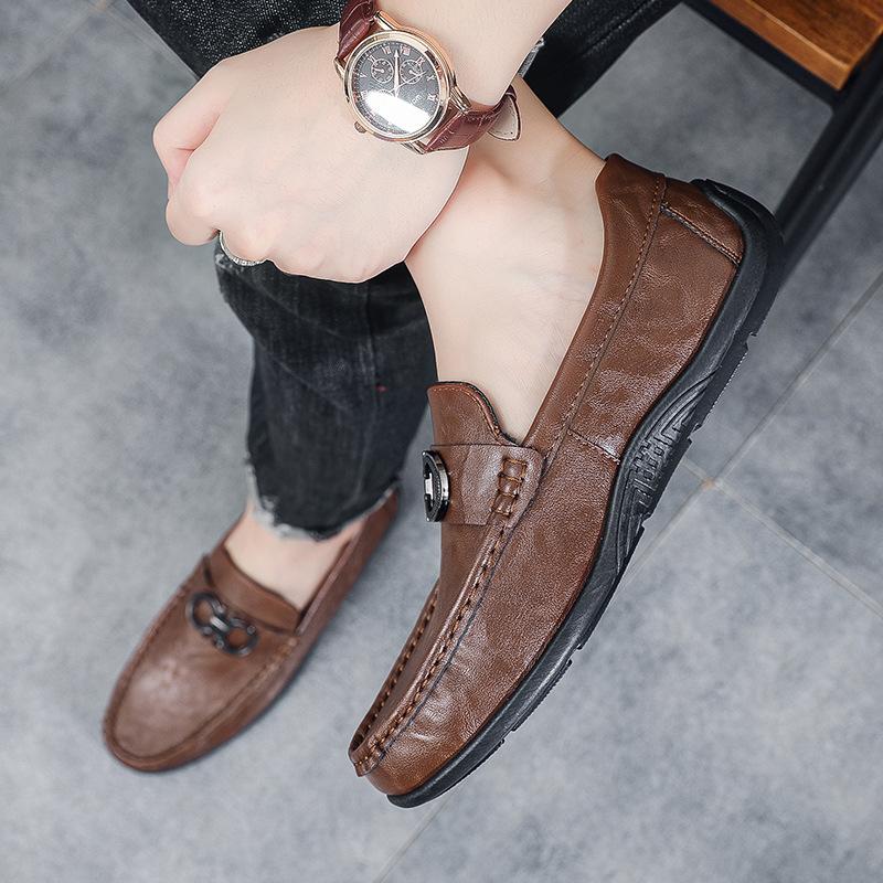 Туфли Doudou мужские 2025 новые модные мужские туфли на один шаг ленивые туфли мужские повседневные кожаные туфли чехол помощь мастерство
