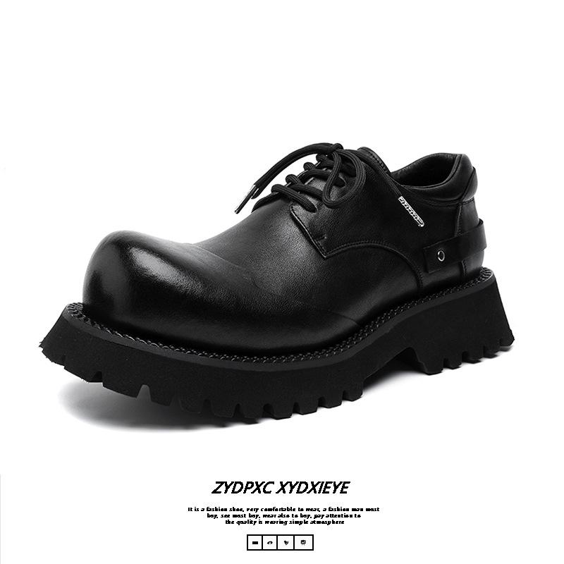 Туфли Дерби мужские с толстой подошвой и завышенной талией, черные, с низким верхом, повседневные, в британском стиле, кожаные 66689-B — купить товар онлайн с бесплатной доставкой до всему миру!