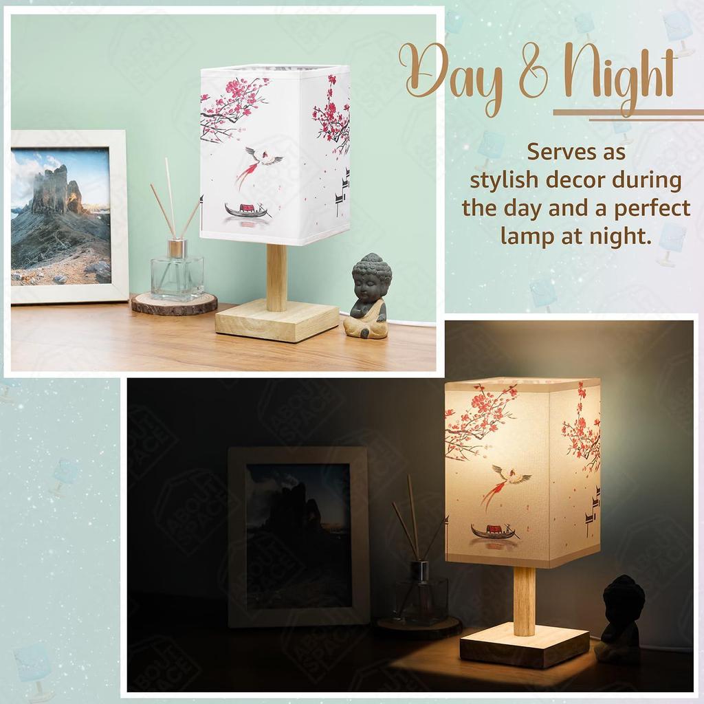 Ночник - Прикроватная лампа для чтения в тематике Красного цветка с деревянным основанием для ночи, спальни, гостиной, дома и декора