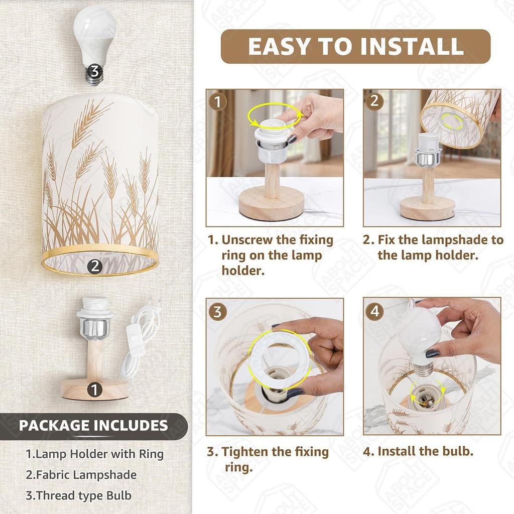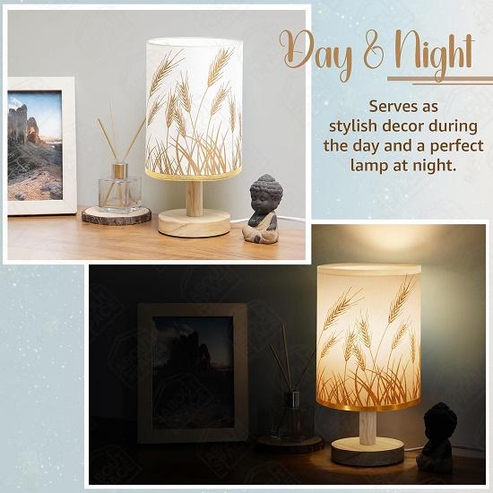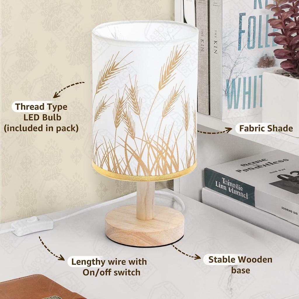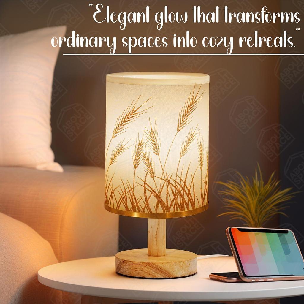 Ночник - Прикроватная лампа для чтения на пшеничную тематику с деревянным основанием для ночи, спальни, гостиной, дома и декора