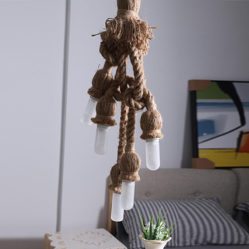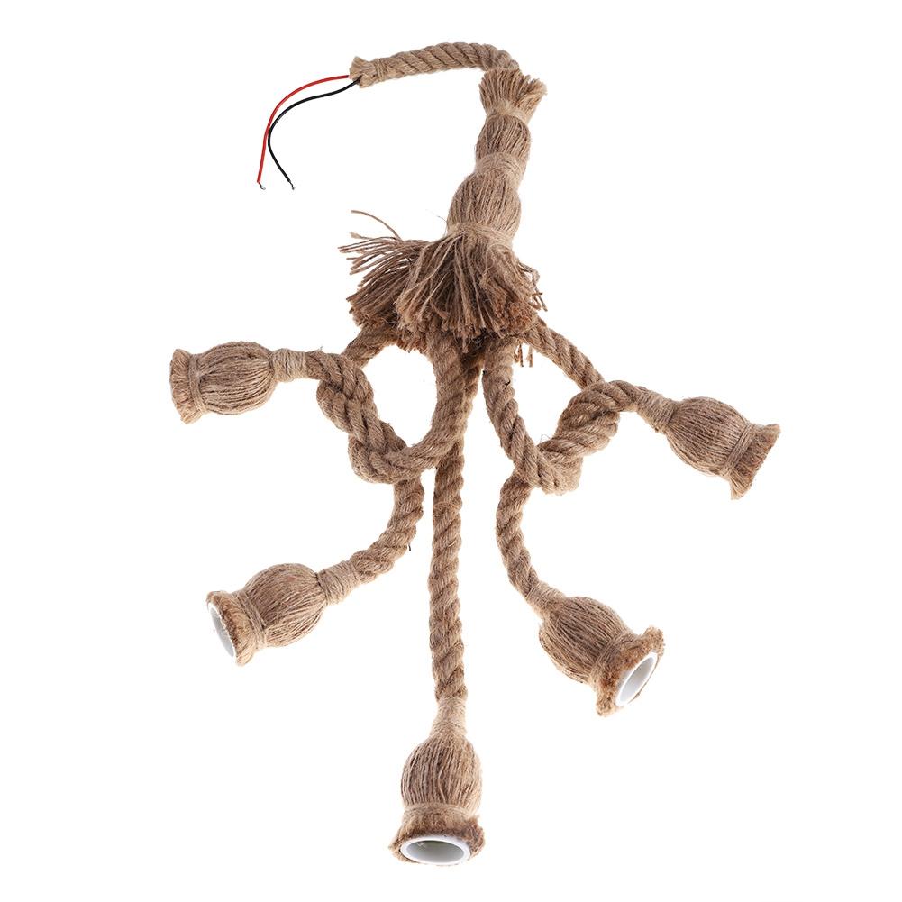 Винтажная подвесная пеньковая веревка с 5 головками для светильника в стиле ретро, потолочная подвеска E27, основание