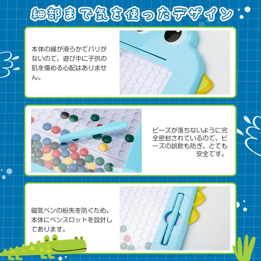 🎨Безопасный материал, нетоксичный и прочный: Магнитная доска для рисования изготовлена из высококачественного, экологически чистого АБС-пластика, поэтому она прочная, ее нелегко сломать, и она прослужит долго.. Закругленные углы гладкие и защищают детские ручки.. Бусины запечатаны в планшете с прозрачной поликарбонатной панелью, что позволяет эффективно избежать риска их потери или проглатывания детьми.. Батарейки не требуются и можно использовать многократно, что уменьшает бумажные отходы и является экологически чистым.