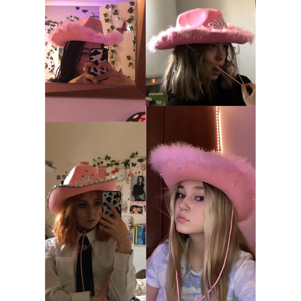 Розовая ковбойская шляпа, фетровая ковбойская шляпа с завязкой на шее, аксессуары для костюма для вечеринки в стиле косплея, игровое платье