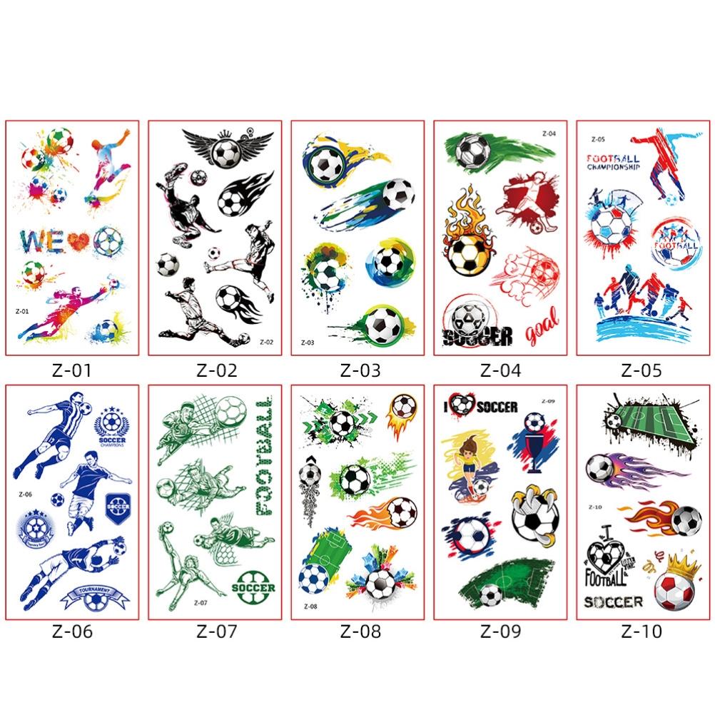 1. 1.[Набор временных татуировок для детей 'Футбол']10 наклеек-татуировок, каждая размером 4,7 x 2,7 дюйма / 12 x 6,8 см. Включает футбольные мячи, футболистов, трофеи, ворота и многое другое, идеально для просмотра футбольных матчей, приклейте на лицо!