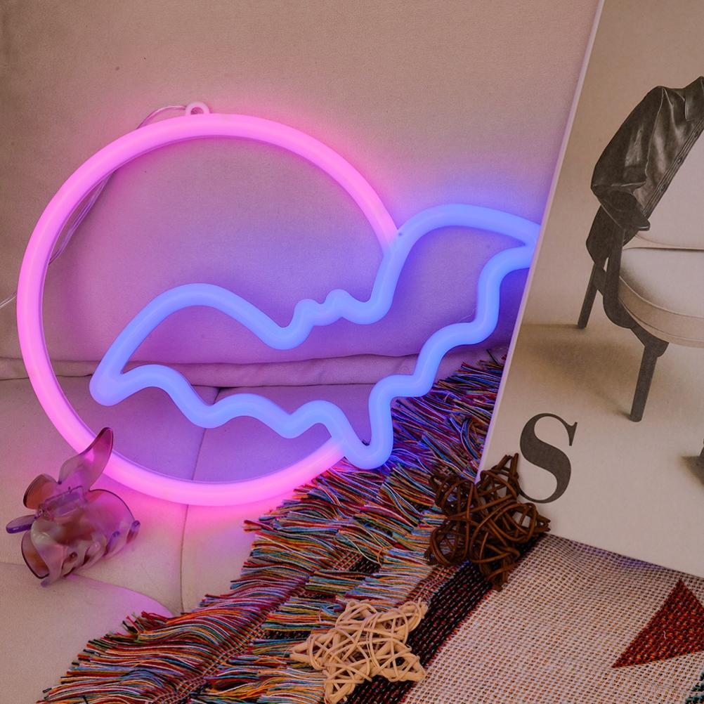 Неоновые вывески на Хэллоуин Луна и Летучая мышь Светодиодные неоновые огни Питание от USB/батареек Неоновая вывеска для стены