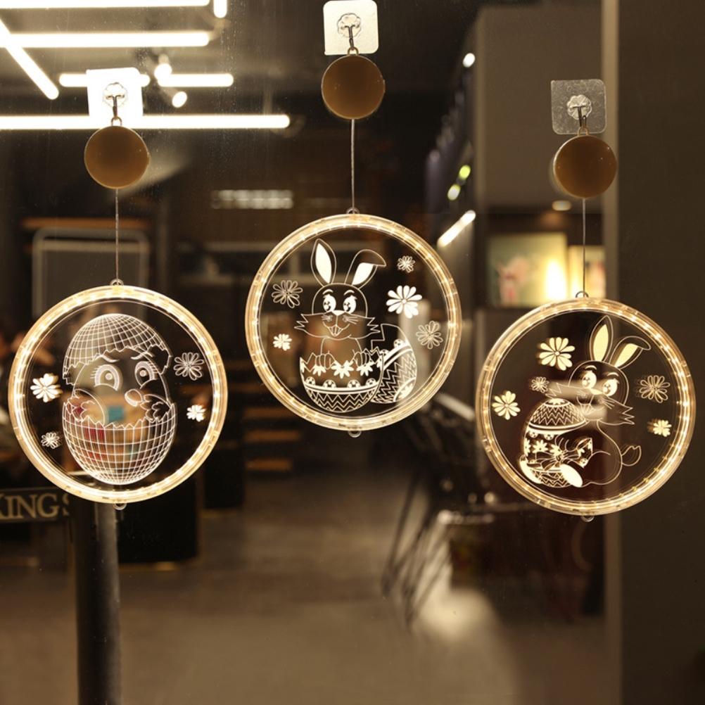 Пасхальные светодиодные светильники с присосками, подвесные оконные декоративные светильники, 3D акриловые светильники для дома