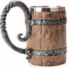 Кружка для пива ручной работы, деревянная бочка, кружка для пива в стиле викингов, имитация дерева, 600 мл, кружка для пива, чашка для пива из смолы из нержавеющей стали с двойными стенками