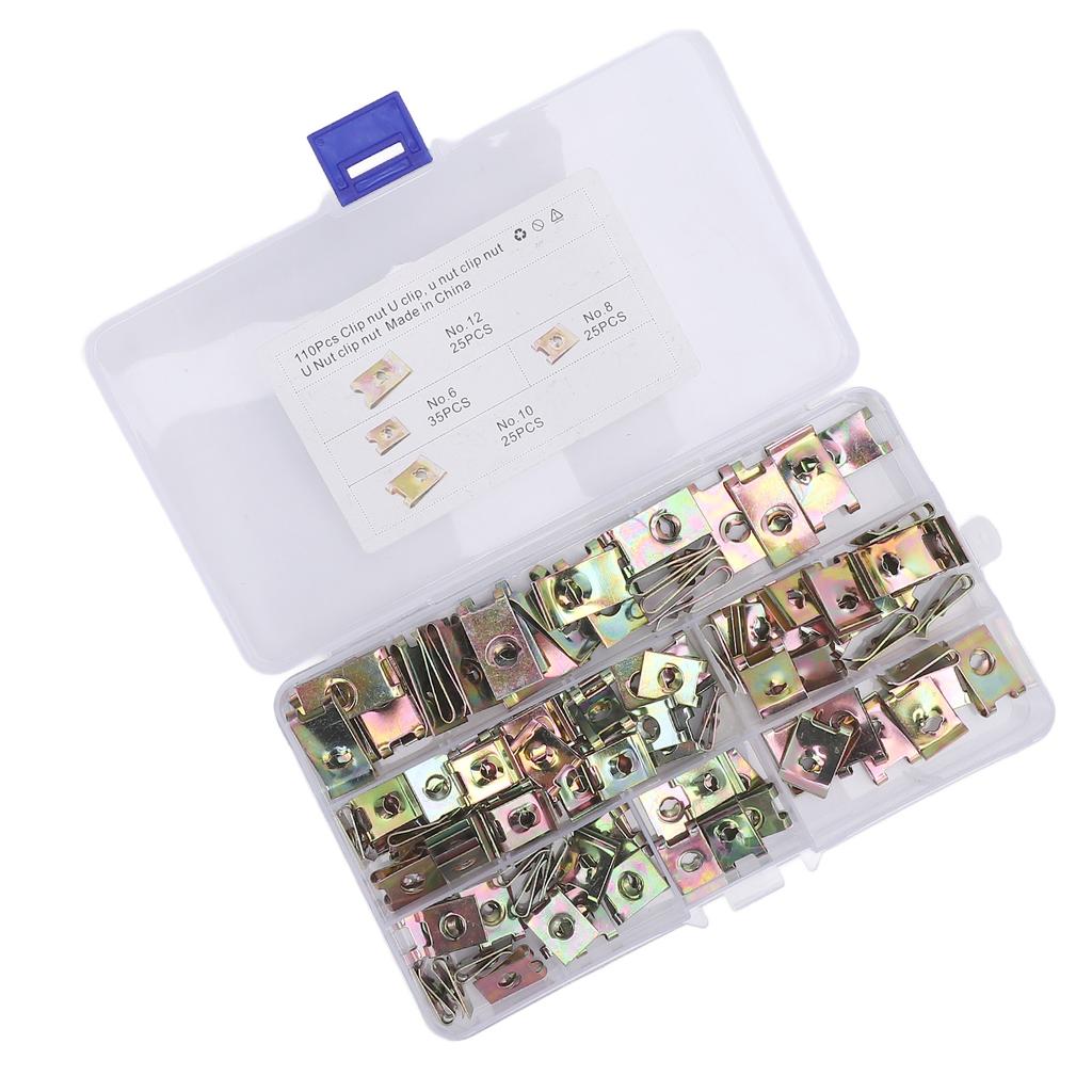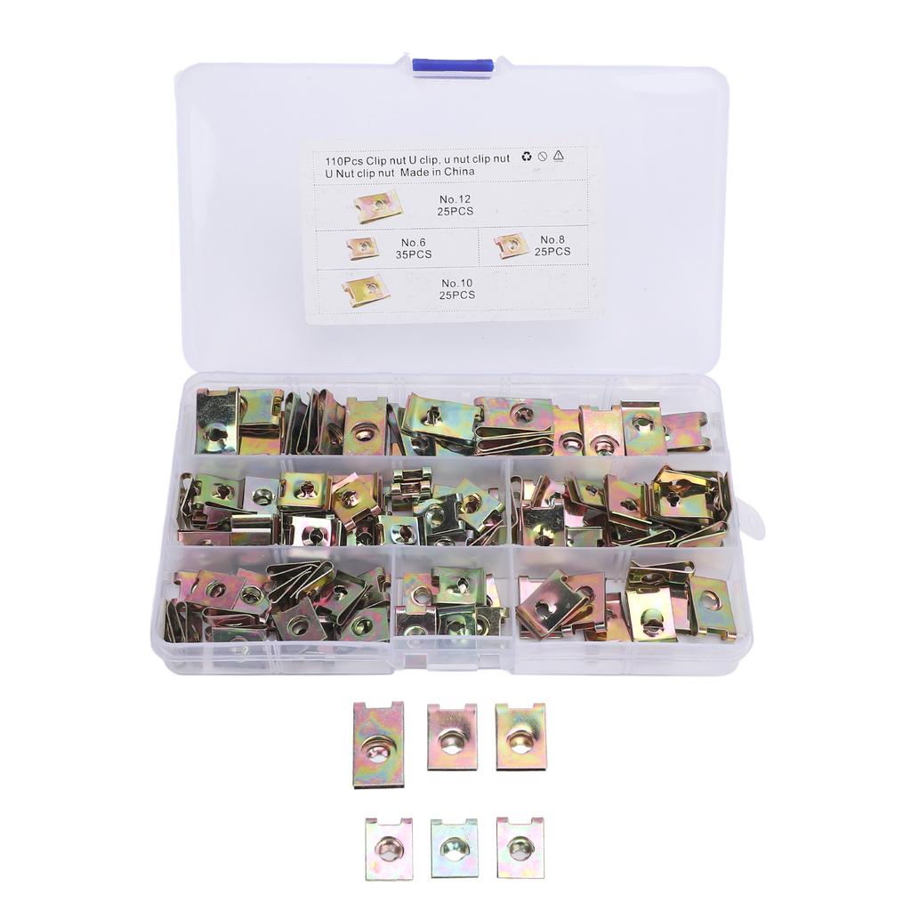 Набор U-образных клипс 110 шт. 4 размеров с цинковым покрытием Легко устанавливается Многоцелевой для бампера автомобиля/мотоцикла