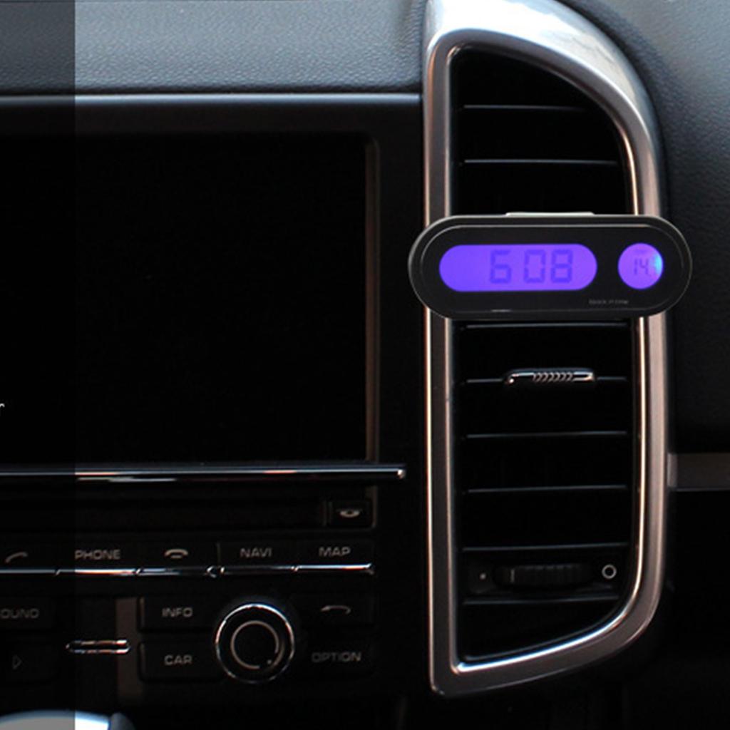 Светящиеся цифровые часы: Эти автомобильные часы оснащены синей подсветкой в темном исполнении, что позволяет легко узнать время даже во время вождения в ночное время.