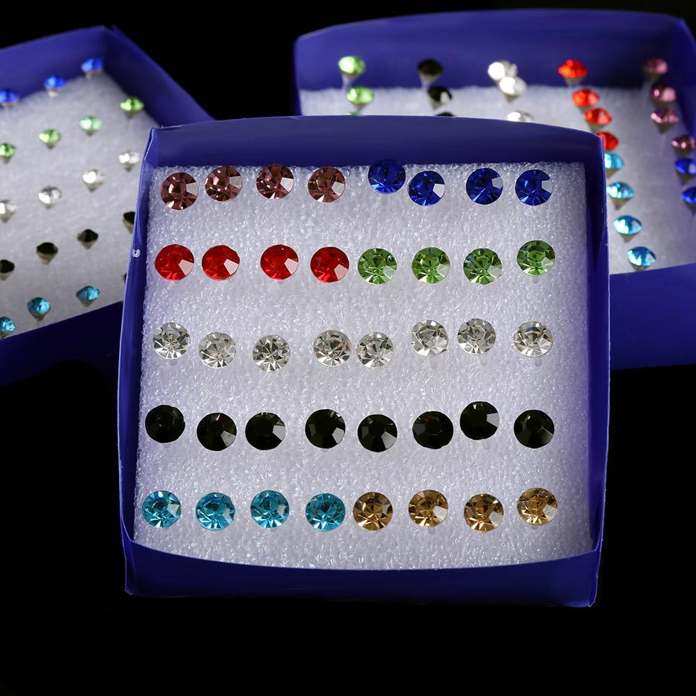 20 пар/40 шт. Очаровательные серьги-пусеты, не вызывающие аллергию, с кристаллами и стразами, ювелирные изделия, цветные кристаллы