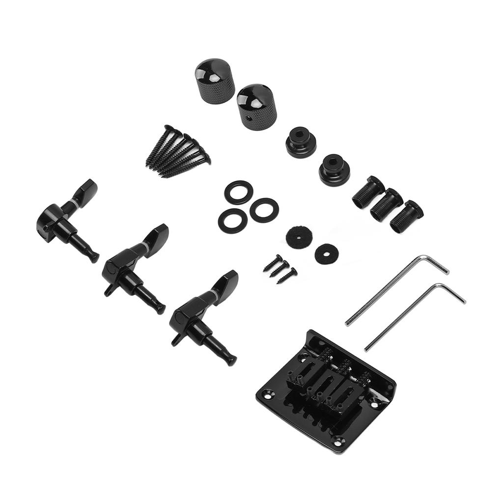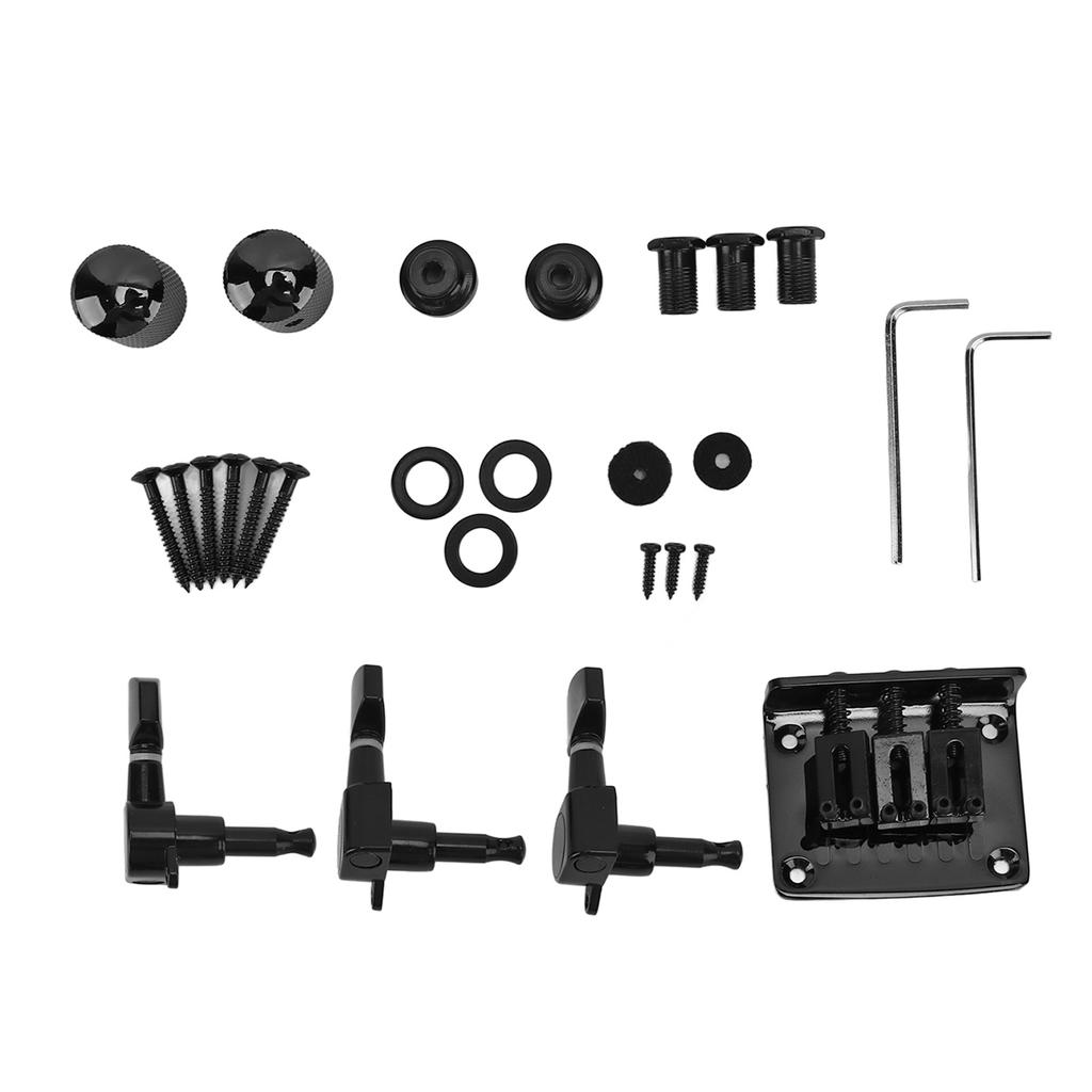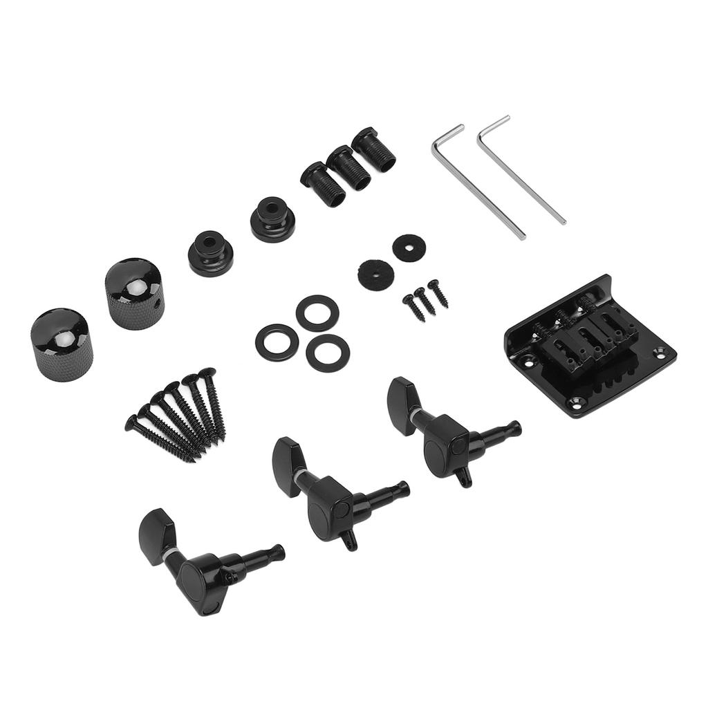 1. ВКЛЮЧЕННЫЕ ИНСТРУМЕНТЫ: Комплект аксессуаров для 3-струнной гитары, включающий бридж, ручки регулировки, колки, ключи, винты, фетровые подкладки, прокладки, шпильки и защелки.