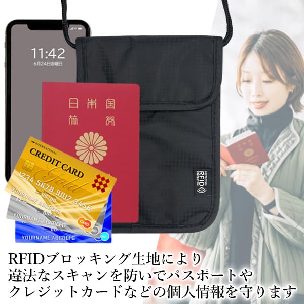 Безопасность паспорта Скимминг Паспорт Шея Авиакомпания Смартфон Зарубежные ценности Регулируемый ремешок [ПримечанияЯпония] Чехол, крепление на шею, RFID, профилактика,