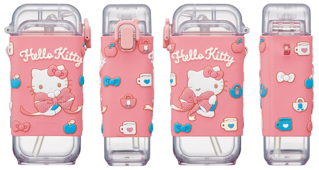 Бутылка для воды Skater Square Straw Bottle M 450 мл с крышкой и плечевым ремнем Sanrio Hello Kitty Большой бант Для девочек Нажимная PSQ5ST-A
