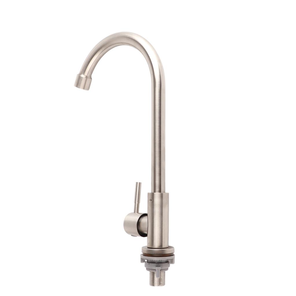 Кран для воды для раковины с резьбой G1/2 дюйма, из нержавеющей стали, одинарный холодный, с одним отверстием, вращение на 360 градусов, кухонный