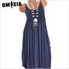 GMXIA Женская мода лето весна сплошной цвет печати без рукавов подтяжки с высокой талией повседневные платья