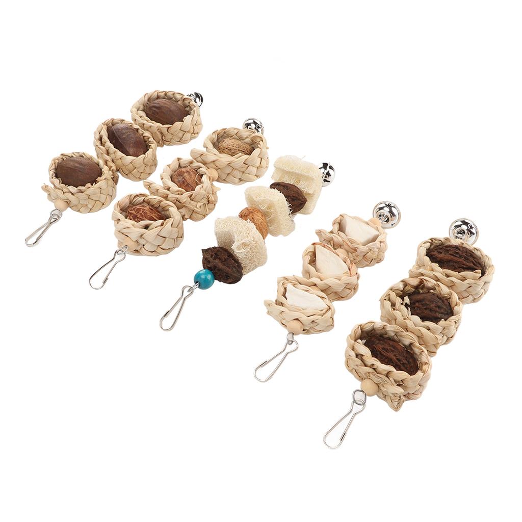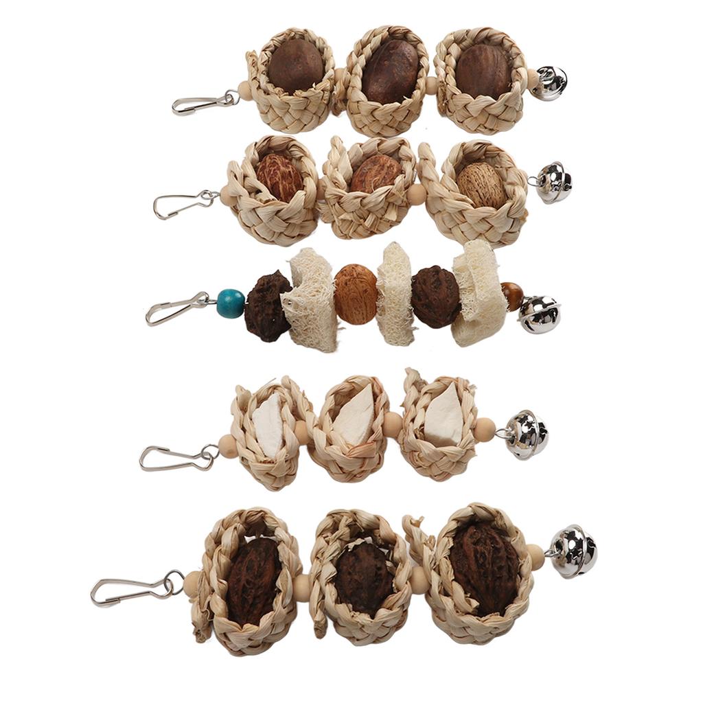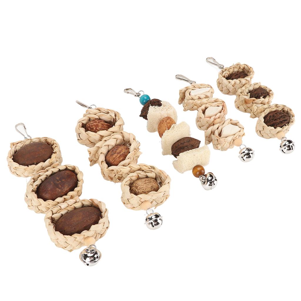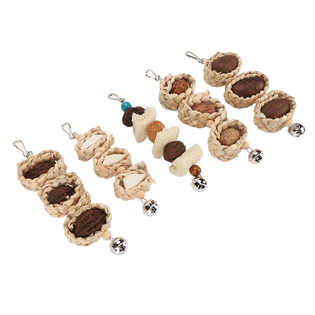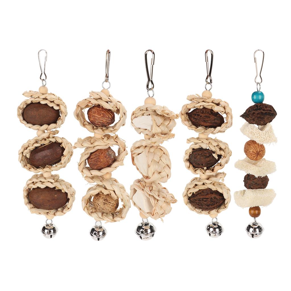 5 ШТ. Игрушка-жевалка для попугая из сепии, устойчивая к укусам, листья кукурузы, орехи, игрушки для жевания птиц с колокольчиком для