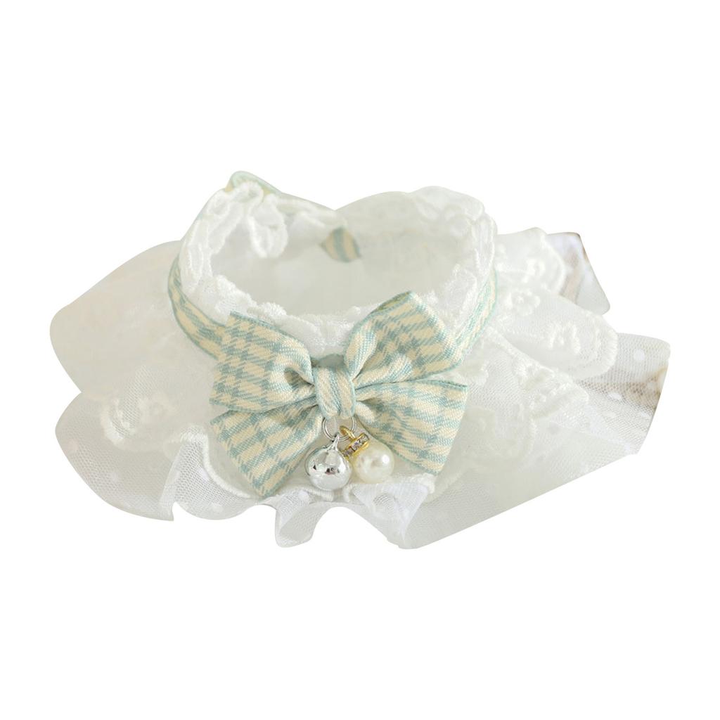 Кружевной кошачий ошейник с бантом и колокольчиками Милый модный питомец Шейный платок Аксессуары для собак Зеленый M