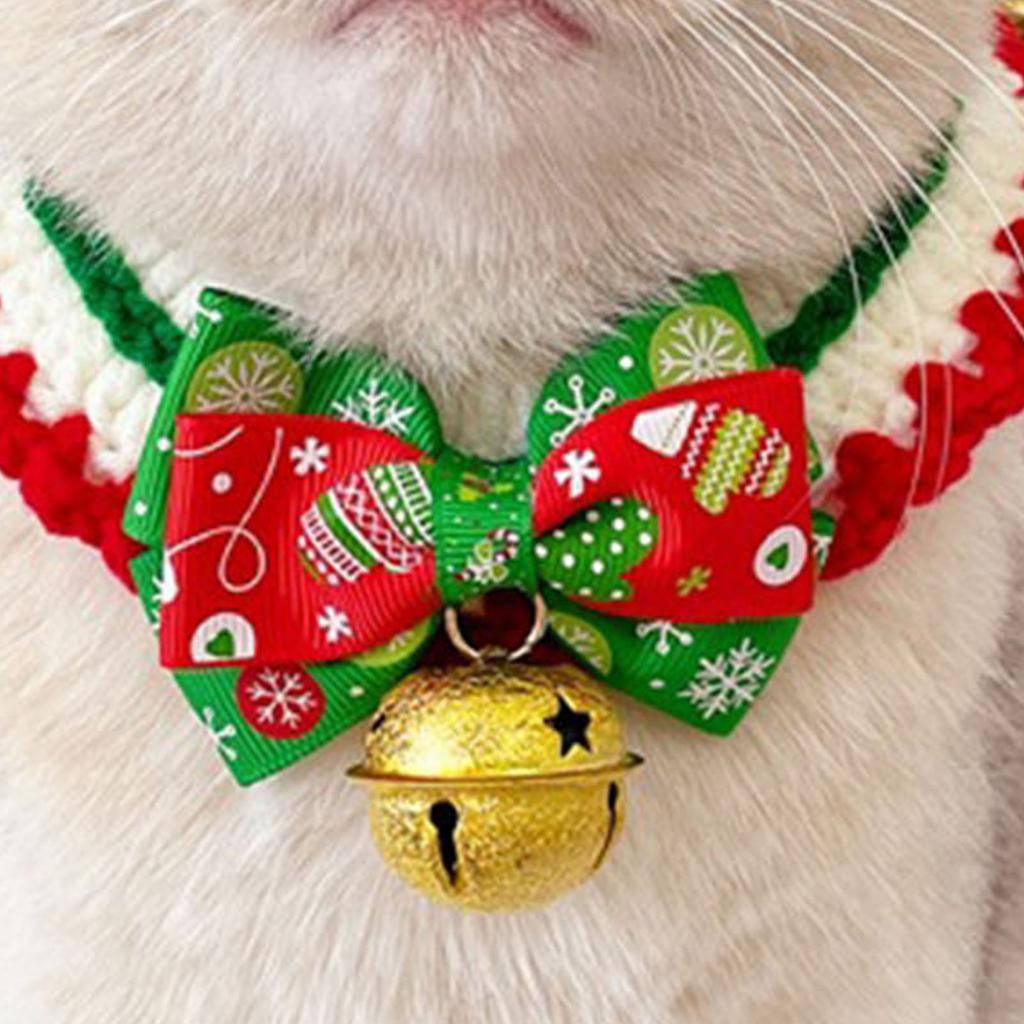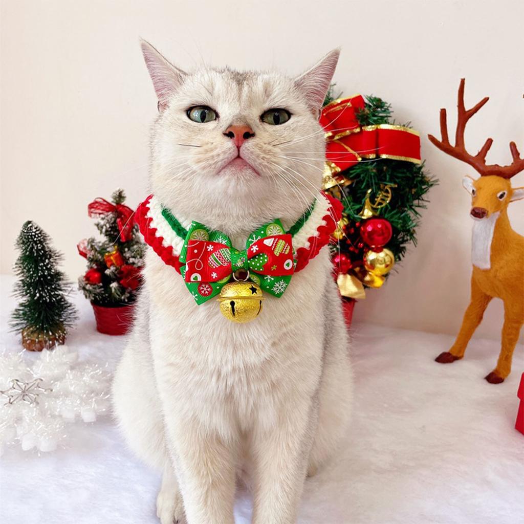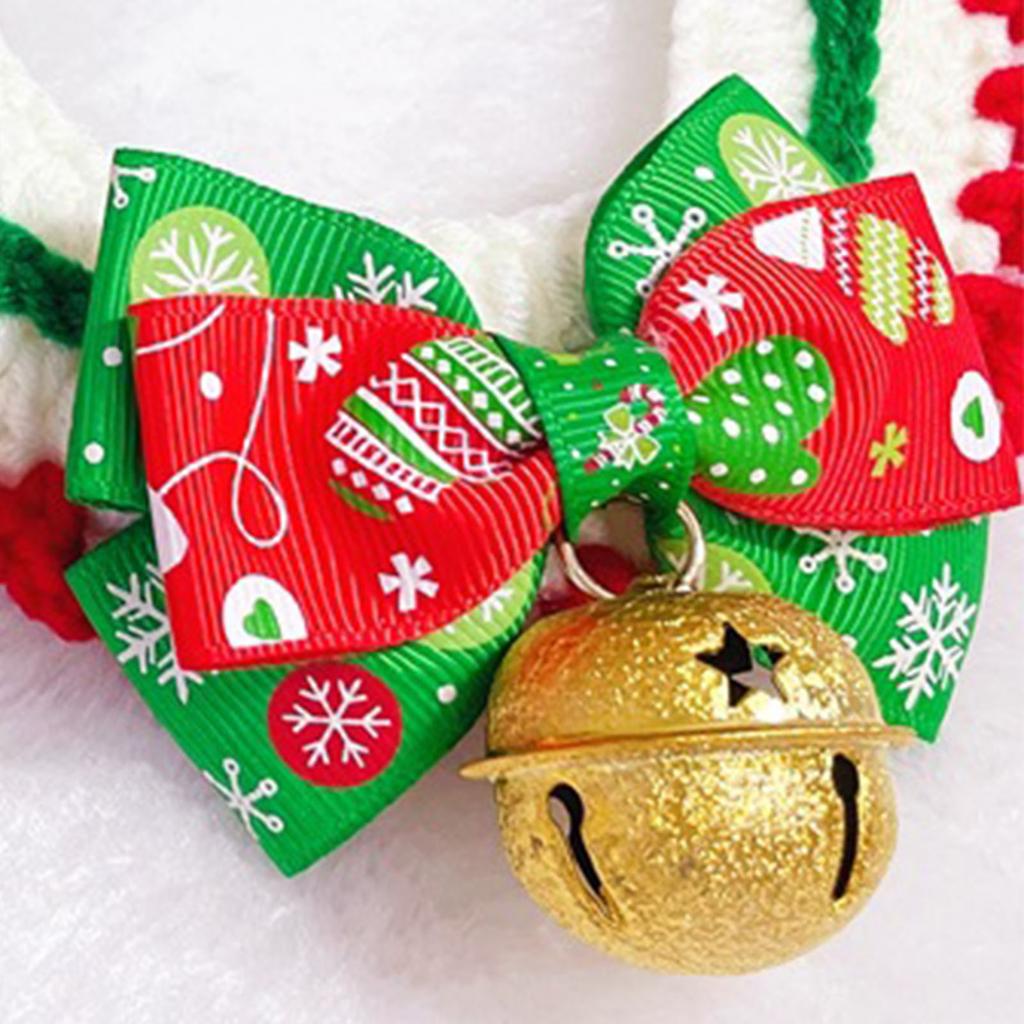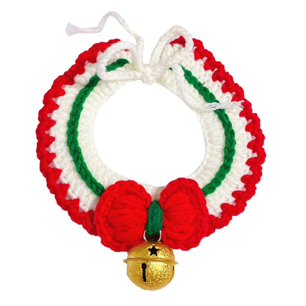 Рождественский ошейник для питомца, регулируемый, милый, ручной работы, вязаный ошейник для кошек и собак, шарф с колокольчиком M