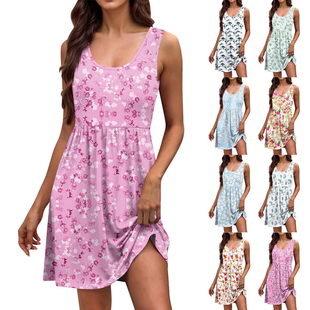 Женское летнее модное платье-майка А-силуэта без рукавов повседневное платье с цветочным принтом/однотонными карманами — купить товар онлайн с бесплатной доставкой по всему миру!