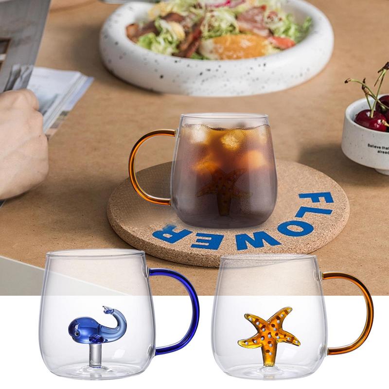 Мультяшная чашка для питья с животным 3D Милая фигурка внутри Прозрачное стекло Мультяшная фигурка дельфина кита Чайная чашка Отличный подарок для детей
