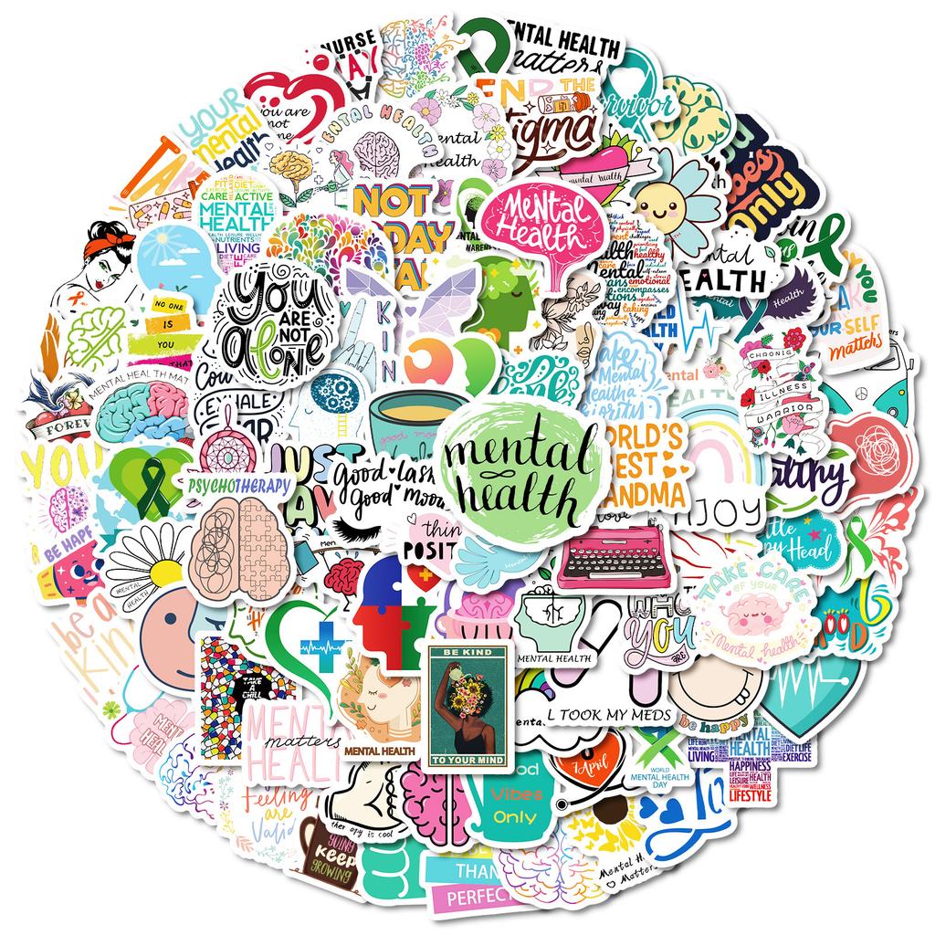 100 маленьких водонепроницаемых декоративных наклеек размером 4 см, различные теплые наклейки из серии «Психическое здоровье»