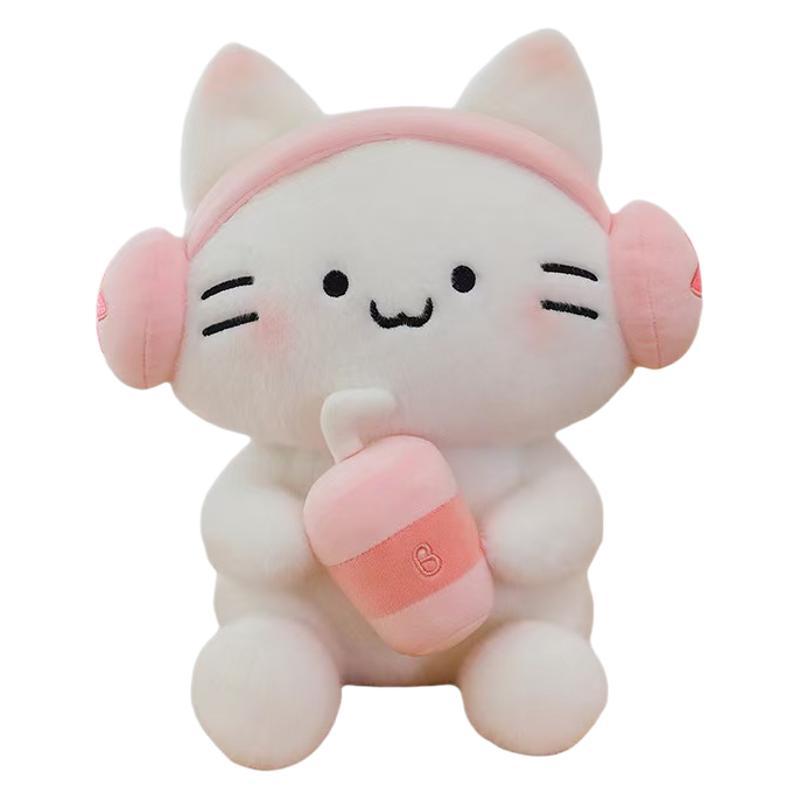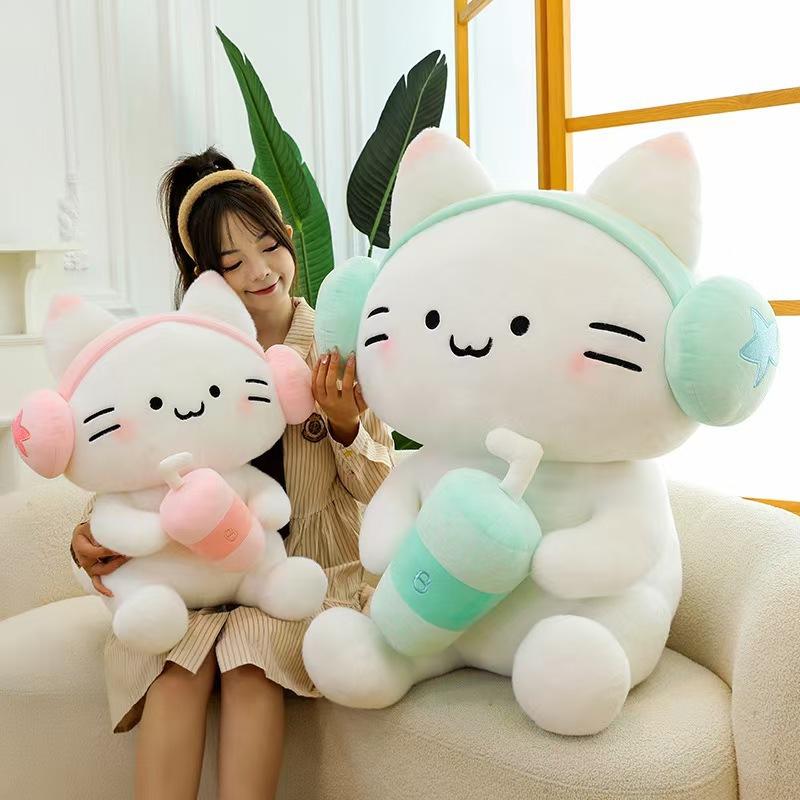 Держащие Наушники Молочный Чай Плюшевая Игрушка Кот Мультяшная Кукла Прикроватная Подушка для Сна Подарок для Девочки Кукла