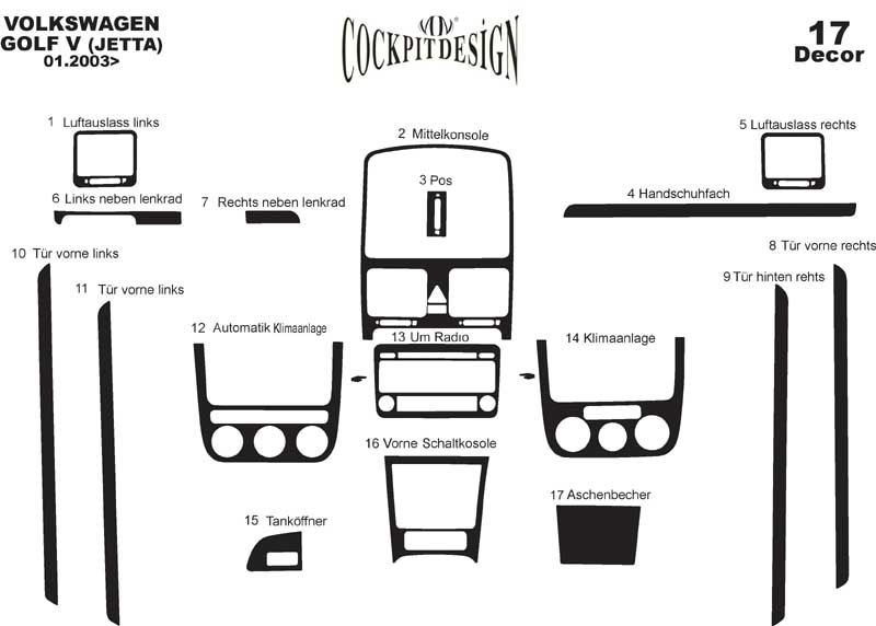Накладки на панель Титан для Volkswagen Jetta 2006-2011 гг