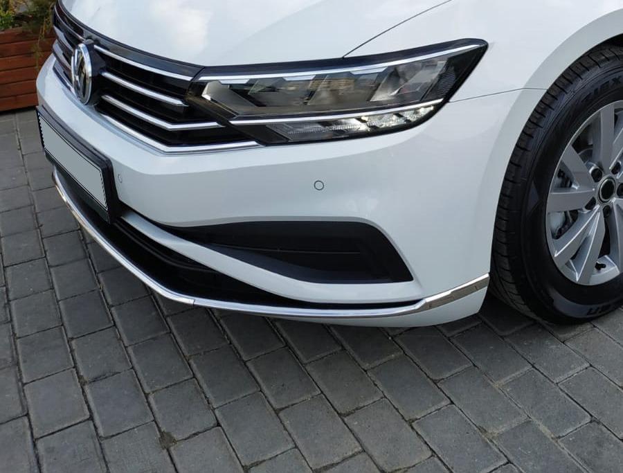 Накладки на передний бампер (2019-2025, 3 шт, нерж) Carmos - Турецкая сталь для Volkswagen Passat B8