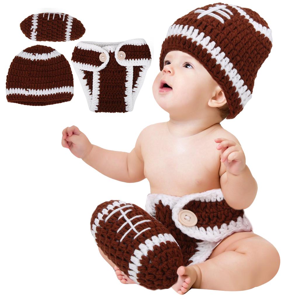 Новорожденный ребенок шапочка штаны бейсбольный костюм фото реквизит шляпы наряды коричневый 0?3 месяца