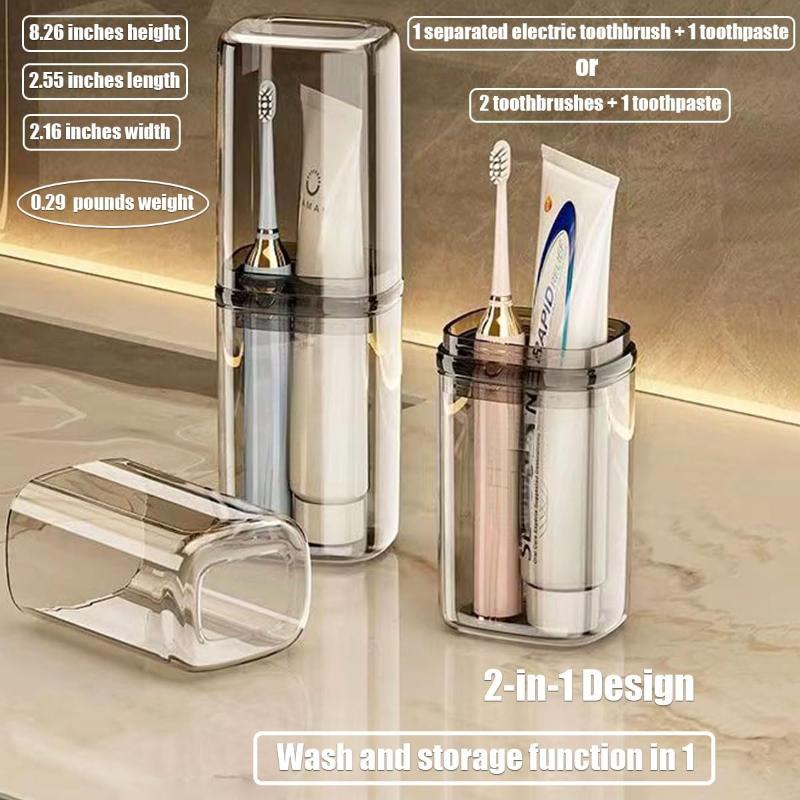 【Организованный и экономящий место】: Высота 8,26 дюйма, длина 2,55 дюйма, ширина 2,16 дюйма, вес 0,29 фунта, подходящий размер, делающий его более удобным для переноски. Дорожный держатель для зубных щеток вмещает 1 разделенную электрическую зубную щетку и 1 зубную пасту или 2 зубные щетки и 1 зубную пасту. Поддерживайте порядок в вашей ежедневной рутине и экономьте место. Пожалуйста, обратите внимание, что он может вмещать зубные щетки высотой менее 20,5 см, у электрических зубных щеток необходимо снимать насадку.