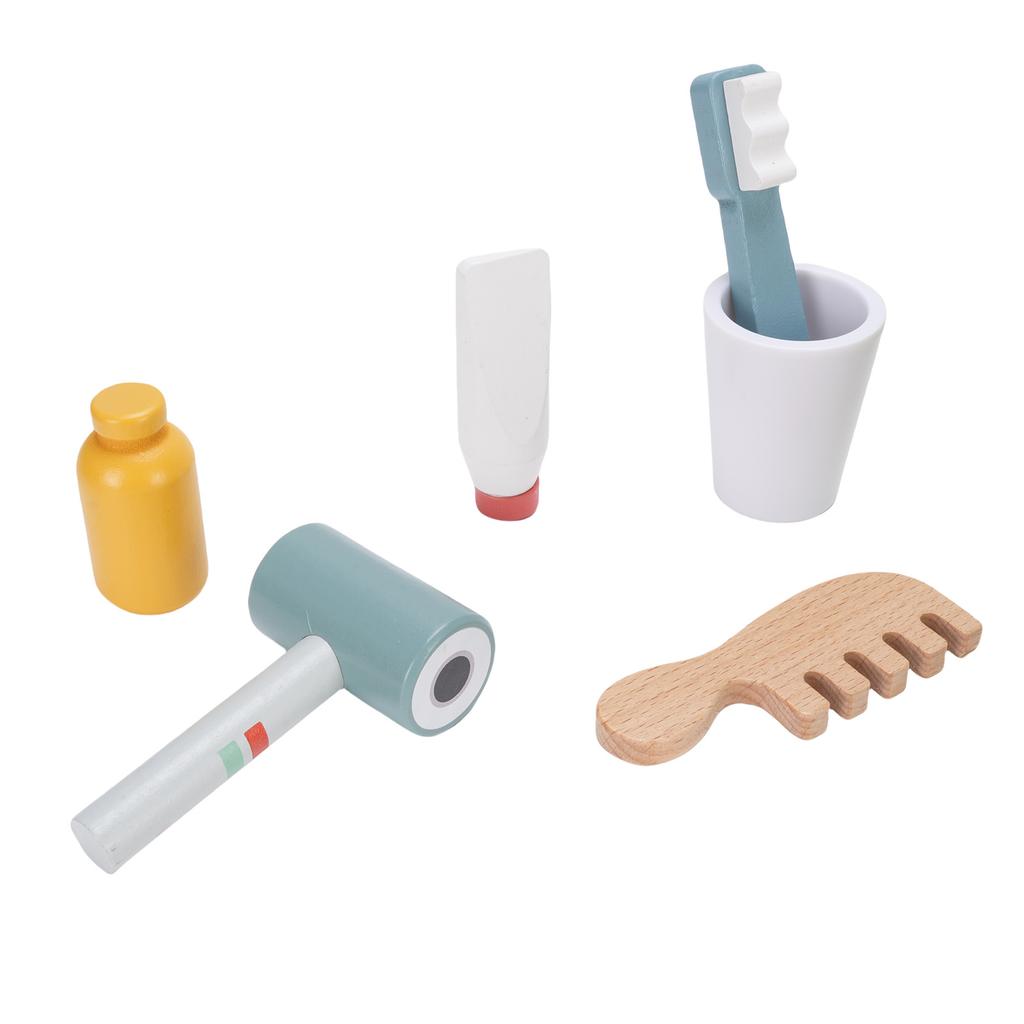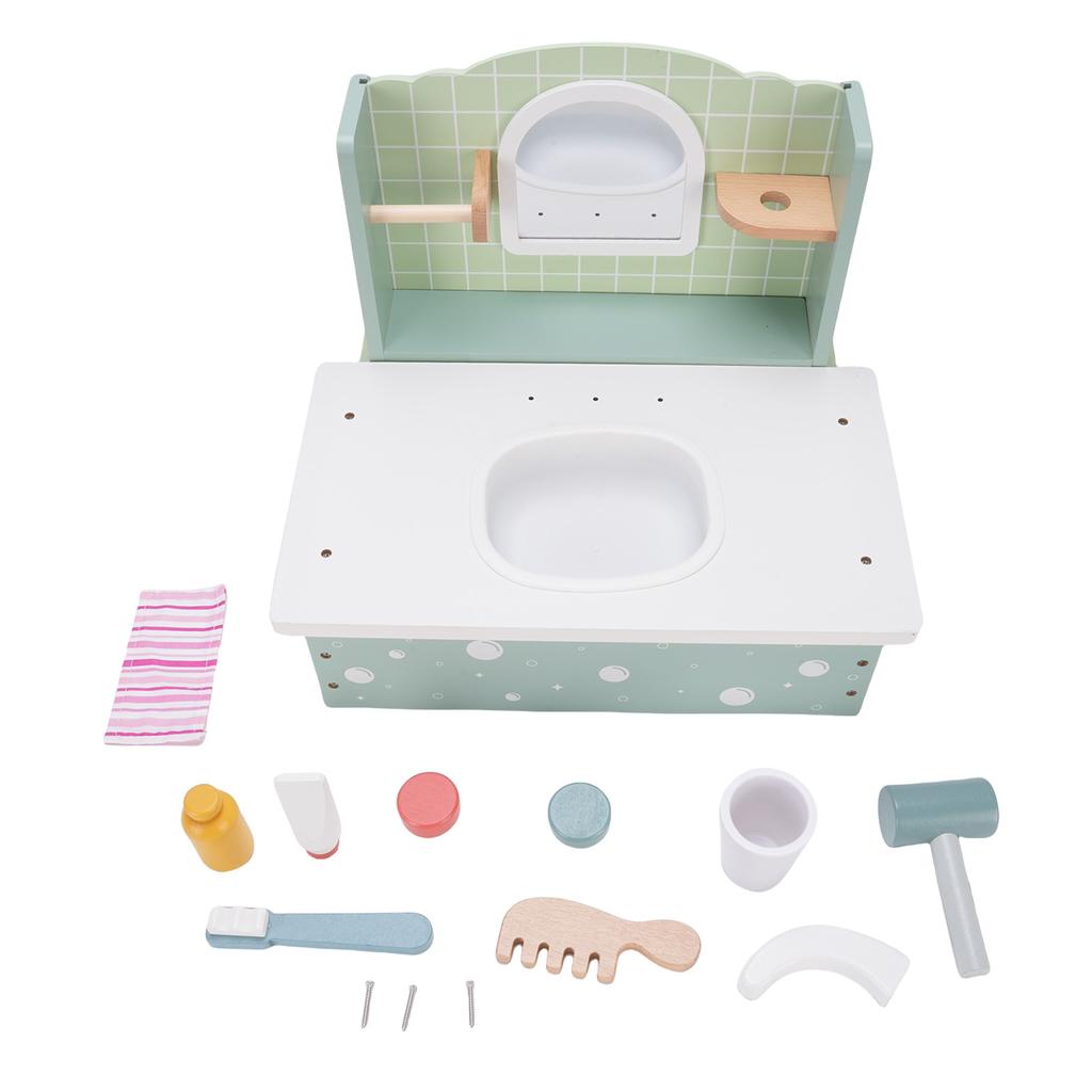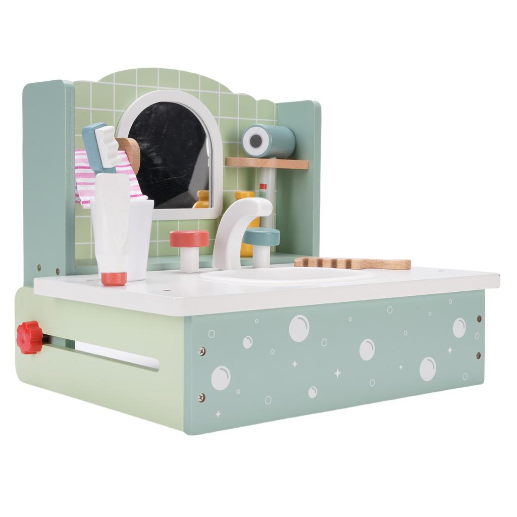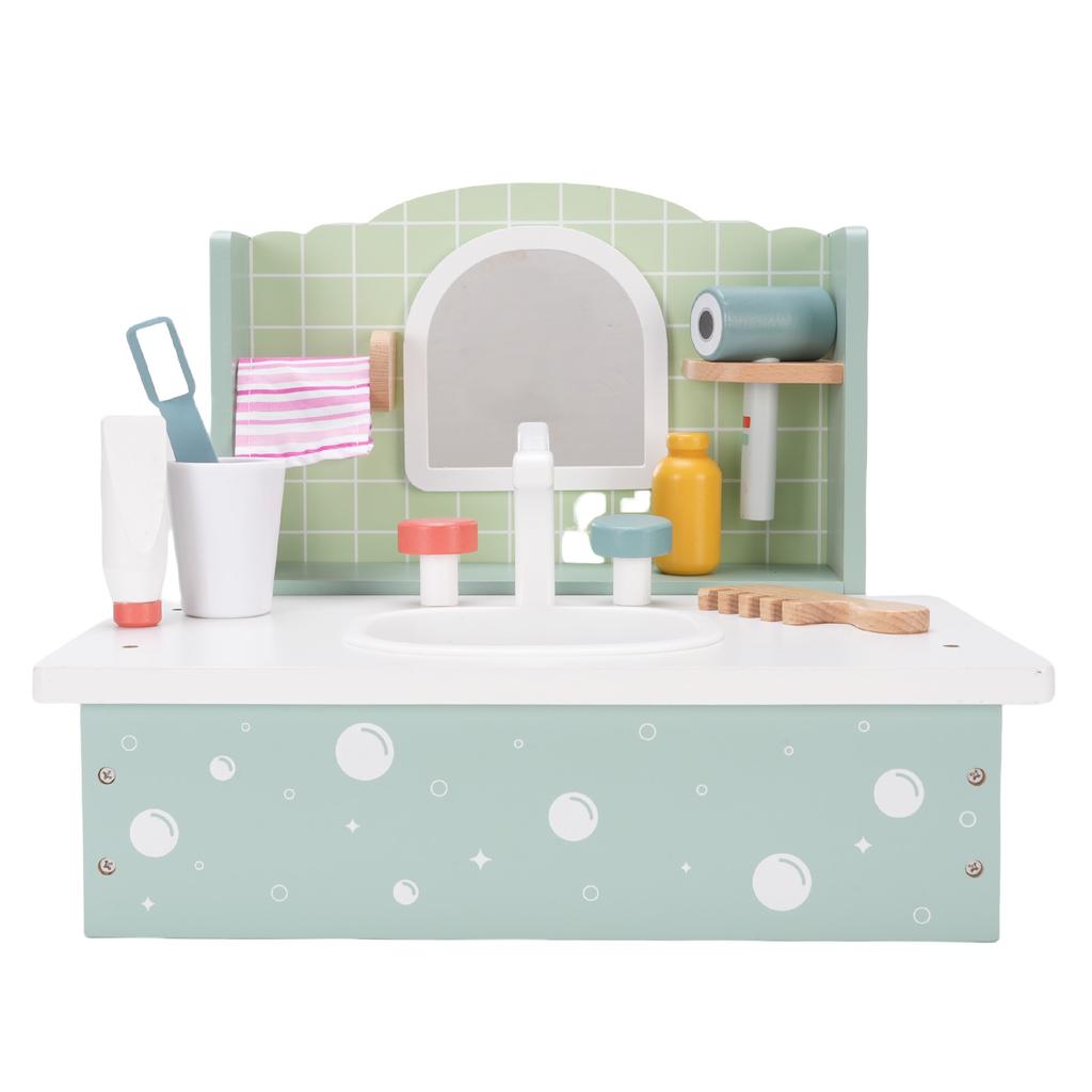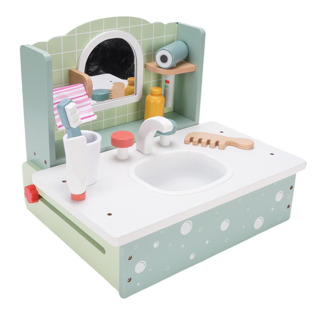 Деревянный туалетный столик для макияжа для детей, развивающая игрушка, имитирующая раковину в ванной комнате, с расческой, феном для волос для