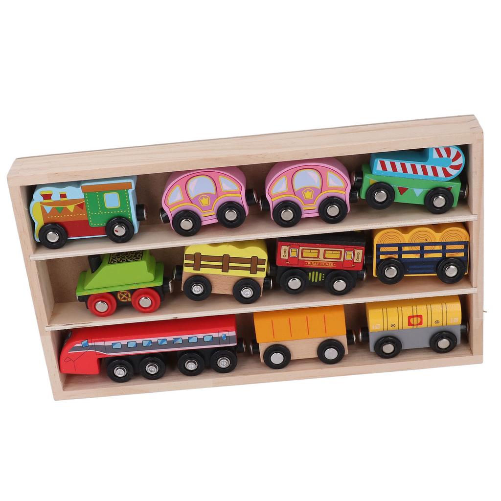 Деревянный набор поездов Яркий цвет Маленькие игрушки-поезда Набор сцены для железной дороги для детей старше 2 лет